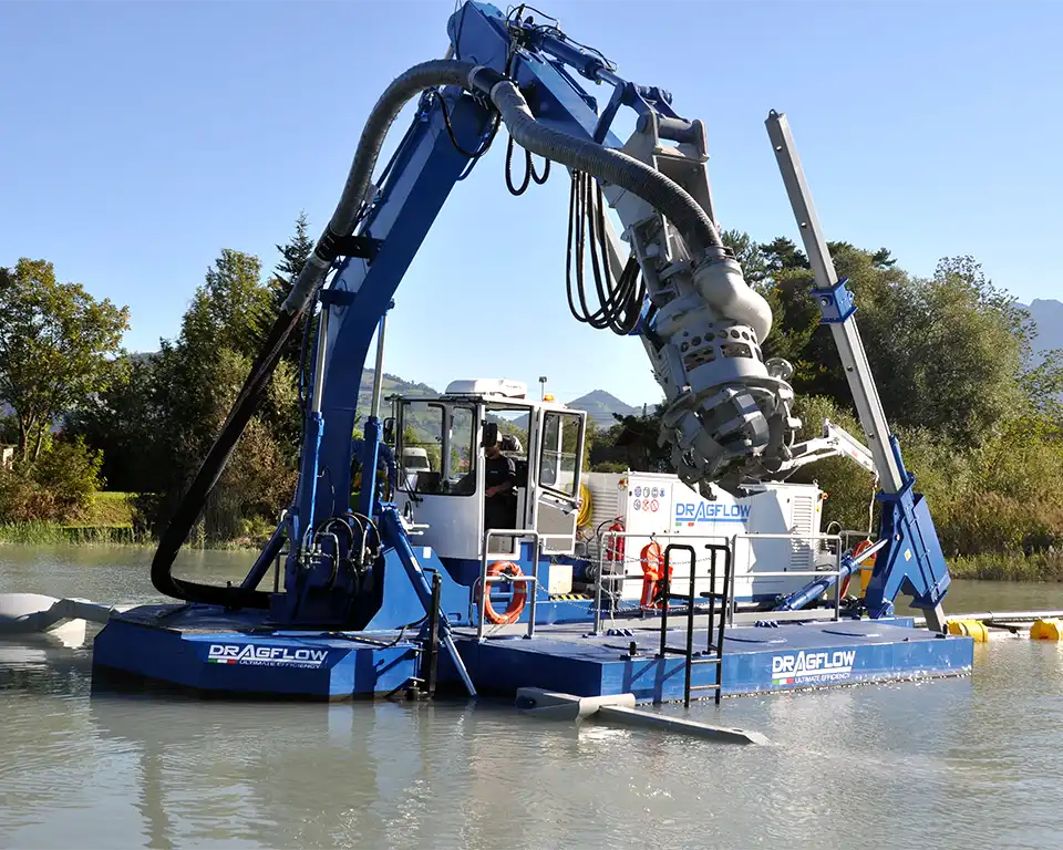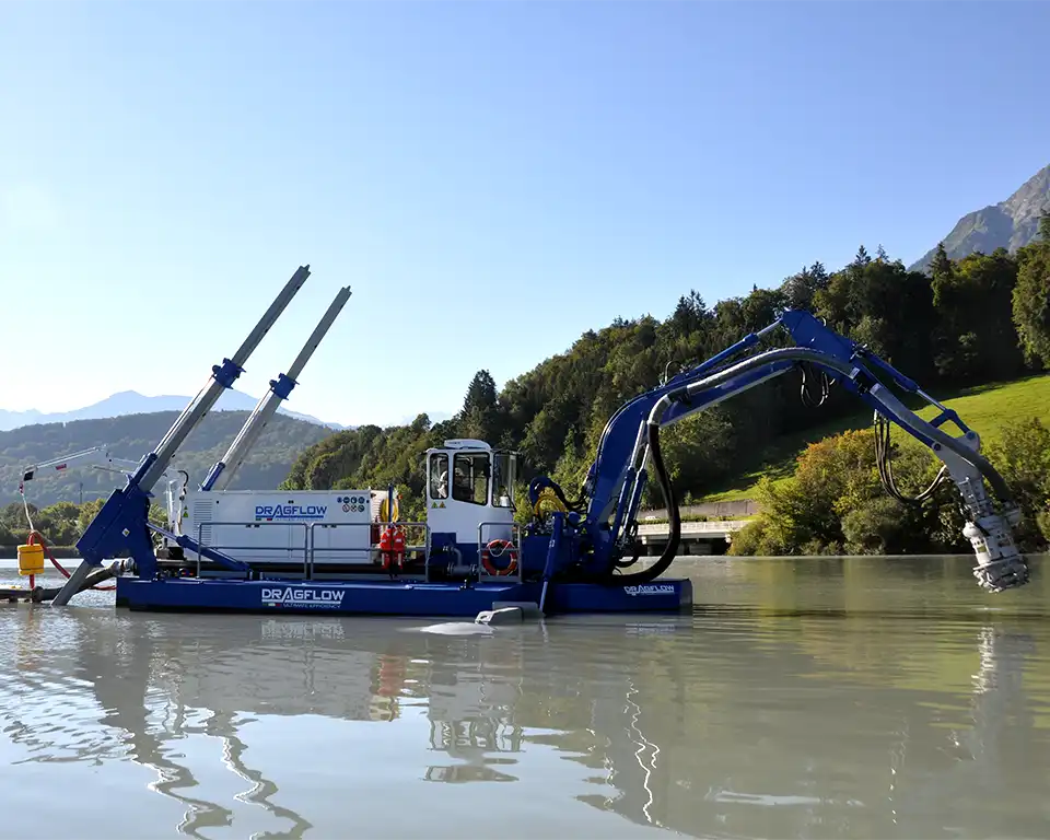 Dragflow’s latest-generation amphibious dredges deliver exceptional performance both in water and on land. Designed for mining operations that demand mobility and durability, these machines guarantee power and efficiency in any environment—solid ground, muddy terrain, or shallow waters. With modular construction for easy transport and advanced dredging technology, our DRM and DRSP series are the ultimate solution for challenging projects.